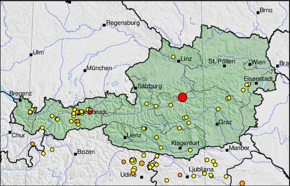 Ein Erdbeben mit der Magnitude 4,5 hat am Mittwoch um 8.30 Uhr viele Bewohner im Raum Admont in der Obersteiermark wohl noch am Frühstückstisch überrascht. Das Epizentrum lag sechs Kilometer westlich von Admont (Bezirk Liezen) und in etwa acht Kilometer Tiefe. Das Beben wurde von Bewohnern nahe des Epizentrums sehr deutlich gespürt, Tische wackelten und Kastentüren mit Mangetverschlüssen sprangen auf, hieß es von der Zentralanstalt für Meteorologie und Geodynamik (ZAMG).