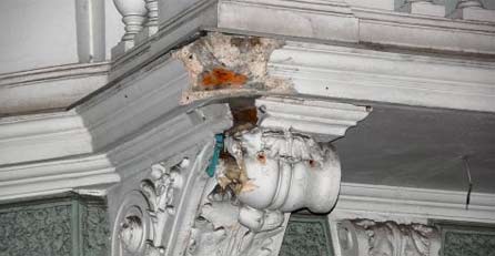 älteren Gebäude Ziegel vom Dach gefallen und Risse in der Mauer aufgetreten