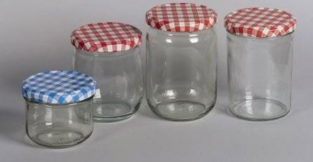 Bezirk Lend Obst einkochen. Sie desinfizierte die Ränder der Einkochgläser