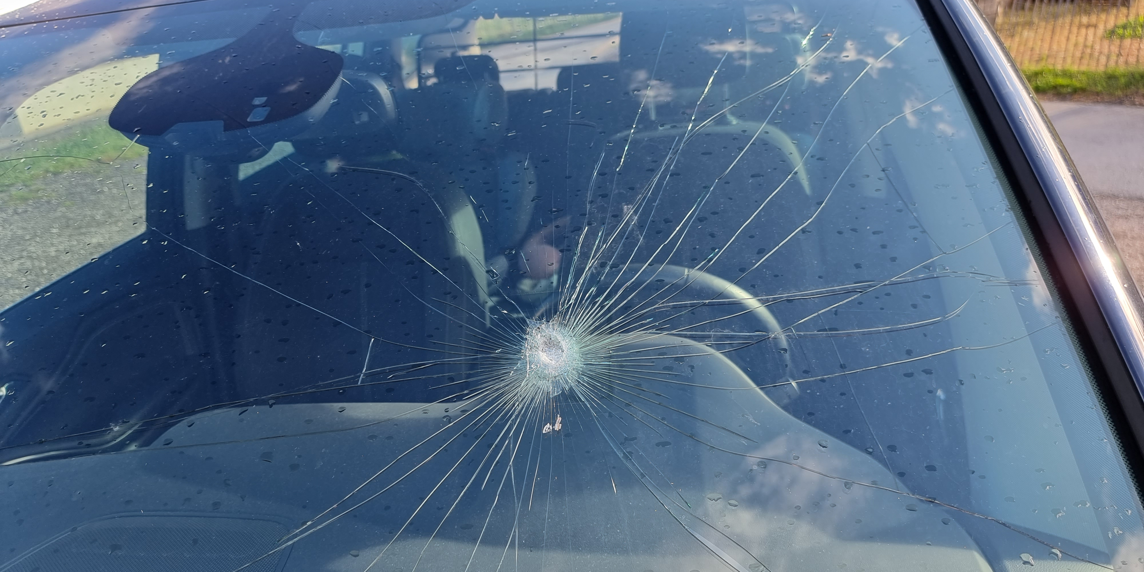 Steiermark. "Ich sah im Augenwinkel gerade noch etwas auf uns zufliegen und dann krachte es schon", beschreibt Anthony H. (46) aus Wien die Schrecksekunde, als während der Autofahrt mit der Familie (Lebensgefährtin (45) und ihren beiden Kinder (5 und 10)) plötzlich ein Stein auf die Windschutzscheibe krachte. Anthony H. blieb zitternd stehen. "Gott sei Dank war gerade kein Auto hinter uns und es war auch kein Gegenverkehr", ist er froh. Niemanden ist etwas passiert, aber der Vorfall passierte in der 80er-Zone und hätte schlimmer ausgehen können. Der Stein schlug genau im Sichtfeld beim Fahrer ein. Was, "wenn ich das Auto nicht unter Kontrolle gehabt hätte, oder mit einem Cabrio unterwegs gewesen wäre ...", macht Anthony H. auf die Gefahrensituation aufmerksam.
