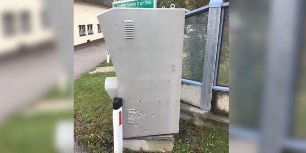 Steiermark. In der Nacht zum Sonntag schoss ein bisher unbekannter Täter 12 Mal auf einen Radar-Kasten in Dürnstein. Dabei benutzte er eine 9 Millimeter Faustfeuerwaffe.