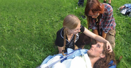Litauers, der aussieht wie Jesus, weichen die beiden Mädchen Rasa und Simona
