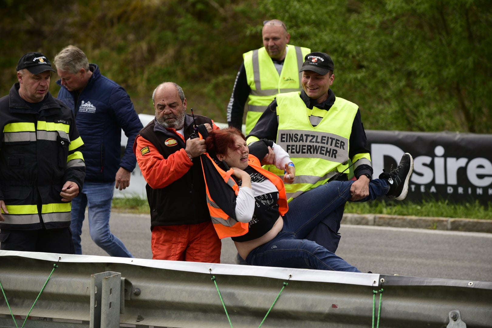 Stmk. Wieder Aufregung um die Letzte Generation, die am Sonntag kurz nach 9 Uhr auf der Strecke des Rechbergrennens protestierten. Fünf Aktivisten betraten vor dem Start des renommierten „Großen Bergpreises von Österreich“ die Strecke und setzten sich in ihren typischen Warnwesten auf den Asphalt. Der Protest führte zu einer Verschiebung des Rennbeginns, an dem 270 Fahrzeuge teilnehmen wollten.