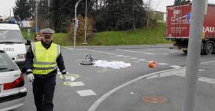 Im toten Winkel übersah ein Lastwagenfahrer einen Radfahrer und überrollte ihn.