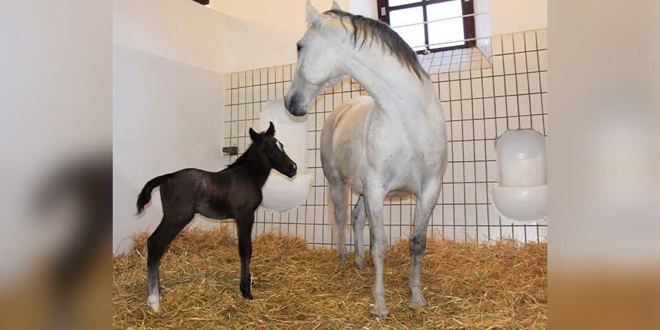 Lipizzaner werden so wie das Hengstfohlen meist schwarz, aber auch braun oder mausgrau geboren und bekommen ihre typische Schimmelfarbe erst mit etwa vier bis zehn Jahren. Die ersten sechs Monate verbringen die Fohlen an der Seite ihrer Mütter, in der "Kinderstube" im Lipizzanergestüt Piber.