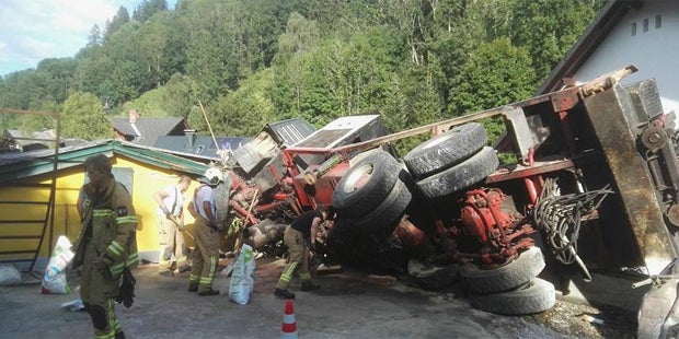 Ein Lkw ist am Montagnachmittag zwischen Rohrmoos und Schladming (Bezirk Liezen) über eine Böschung auf ein Garagen- und Hausdach gestürzt. Der Lenker wurde bei dem Unfall schwer verletzt.