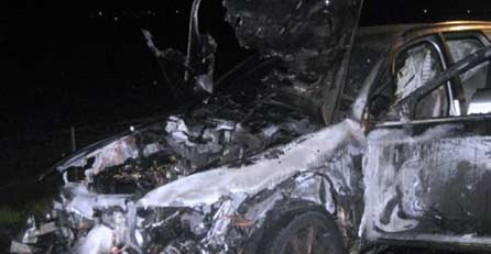 Mitten während der Fahrt auf der B 68a brach Sonntagnacht in einem Pkw ein Feuer aus. Das Auto brannte total aus.