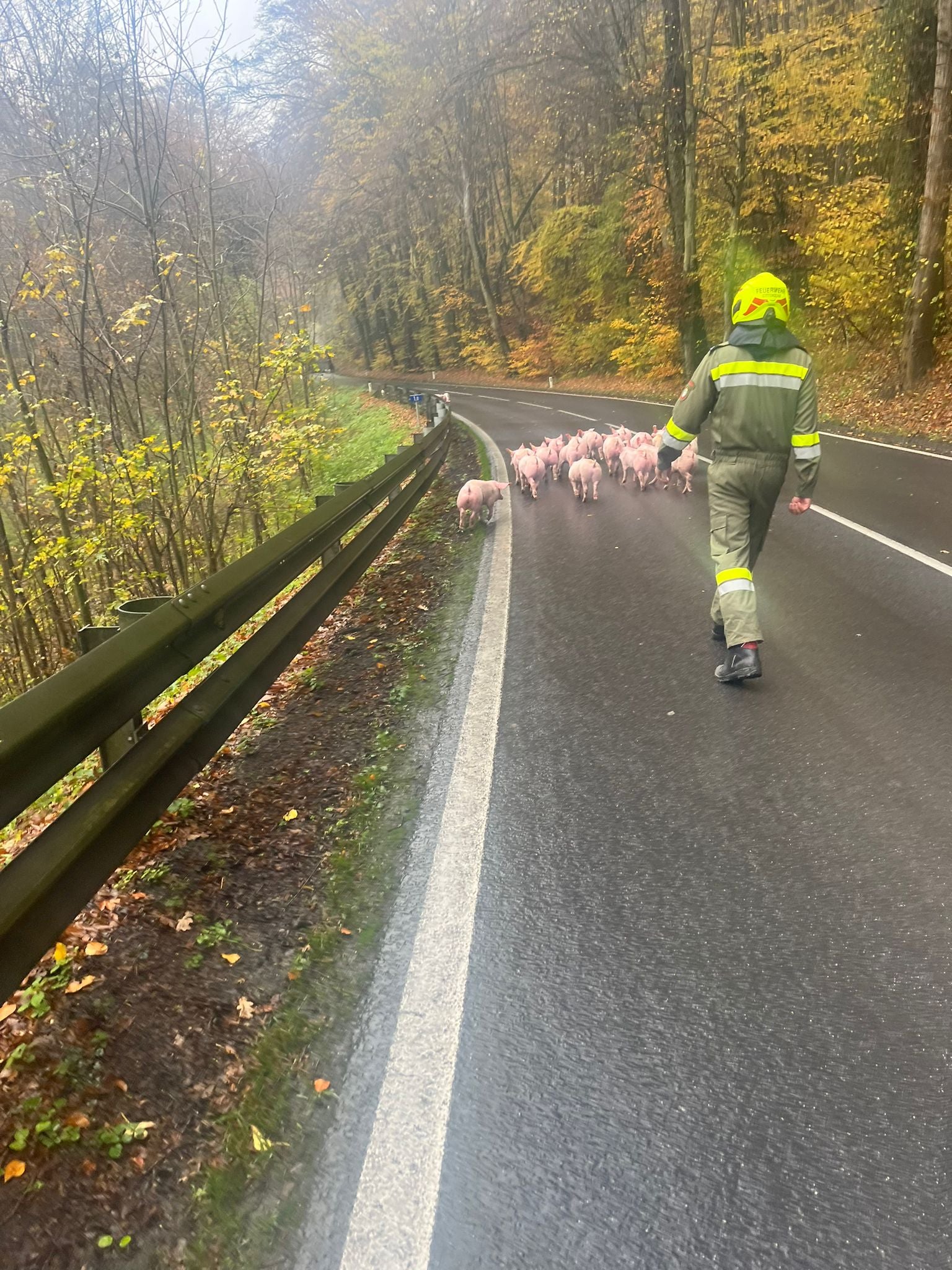 Da das Dach des Anhängers beim Unfall aufriss, konnten mehrere Ferkel auf die Straße ausbrechen, welche dann von der Feuerwehr wieder eingefangen werden mussten. Insgesamt verendeten 46 Ferkel gleich am Unfallort, drei weitere erlitten schwere Verletzungen, weshalb sie von einer Tierärztin eingeschläfert werden musste.