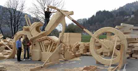 Rekordverdächtige 250 Arbeitsstunden stecken im riesigen Holz-Motorrad.
