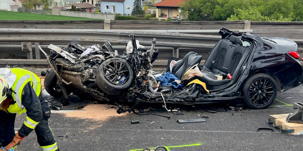 Der Horror-Crash zwischen einem Lkw und einem Auto ereignete sich im Morgenverkehr auf der S4 bei Lanzenkirchen. Der Lastwagenfahrer wurde gestern vom Landesgericht in Wiener Neustadt zu sieben Monaten bedingt verurteilt. Er soll durch Verreißen des Lenkrades seines Sattelzuges den Unfall verursacht haben.