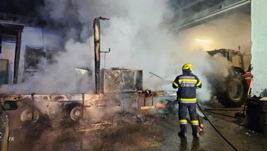 Sankt Veit in der Südsteiermark. – In der Nacht auf Montag, 24. Februar 2025, geriet ein Anhänger, der zuvor bei einem Faschingsumzug verwendet worden war, in Brand. Verletzt wurde niemand.