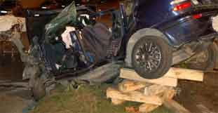 gegen einen Baum. Da sie durch den Unfall im total beschädigten Fahrzeug