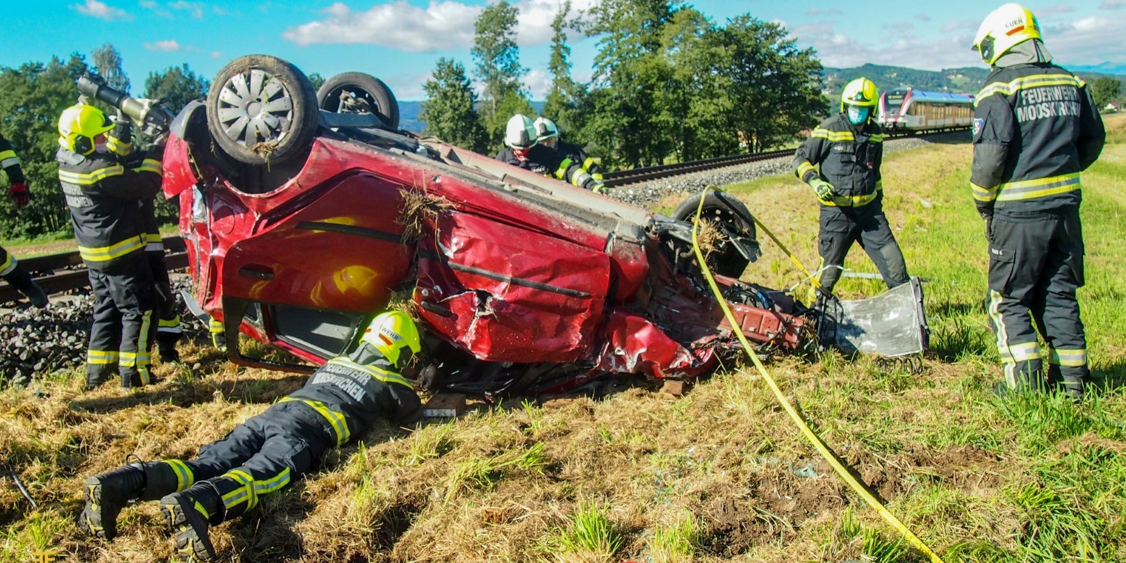 Zu dem Unfall kam es gegen 10.30 Uhr an einem unbeschrankten Bahnübergang im Ortsteil Moosing - offenbar unweit des Wohnorts des Ehepaares. Die Unglücksstelle ist übersichtlich, die Schienen der Strecke der GKB (Graz-Köflacher Bahn und Busbetrieb GmbH) verlaufen hier schnurgerade. Der Aufprall war so heftig, dass das Auto des betagten Paares zur Seite geschleudert wurde und auf dem Dach landete. Der 84-Jährige wurde in dem Wrack eingeklemmt und musste von den Feuerwehrleuten erst freigeschnitten werden.