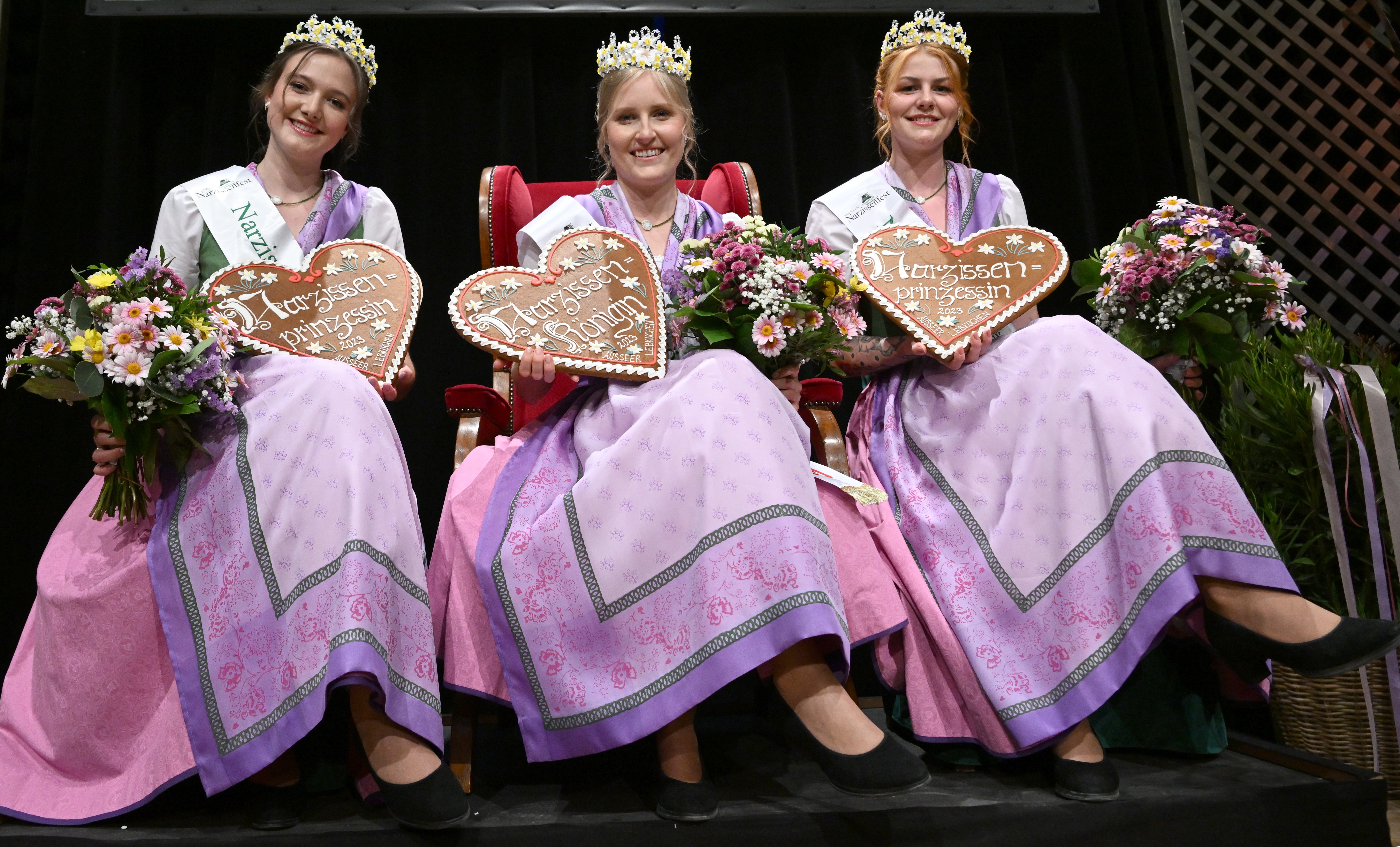 Das 63. Narzissenfest im obersteirischen Bad Aussee hat am Donnerstag mit einem ersten Höhepunkt des viertägigen Festes gestartet: die Narzissenhoheiten wurden im Kur- und Congresshaus gekrönt. Königin Michaela Ertlschweiger aus Aigen im Ennstal wird nun für ein Jahr das Fest bei Veranstaltungen und Terminen in ganz Österreich repräsentieren. Sie wird dabei von den Prinzessinnen Sophia Hellwig aus Gmunden sowie Celin Pichler aus Bad Mitterndorf unterstützt.