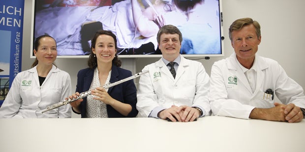 Es war nicht das größte Konzert der Querflötistin, aber wohl das bemerkenswerteste: Vor einem Jahr hat sich eine junge Musikerin an der Grazer Uniklinik für Neurochirurgie ihren Gehirntumor entfernen lassen - teils bei vollem Bewusstsein und musizierend, wie die behandelnden Ärzte der Frau am Mittwoch im Pressegespräch in Graz zurückblickten.