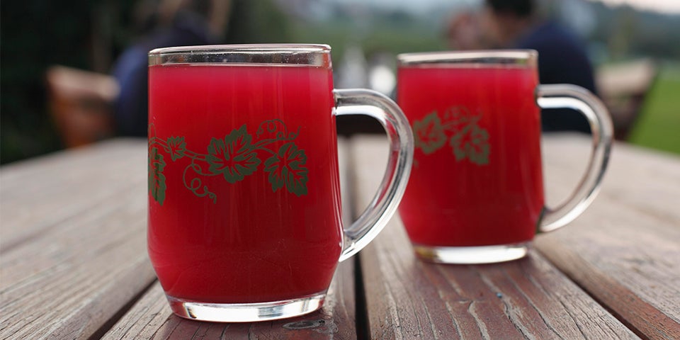 Zur Demonstration brachte er einen Geschenkkarton zur Verhandlung mit: Zwei Flaschen Schilchersekt und eben ein Gläschen Ribiselmus befanden sich darin und hätten einen ähnlichen Drink wie den berühmten Bellini ergeben sollen.