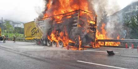 Auf der Pyhrn-Autobahn, rund 200 Meter nach der Mautstelle Ardning, ging gestern Vormittag nichts mehr. Ein Lastwagenanhänger – beladen mit 260 Waschmaschinen – hatte nach einem Reifenplatzer Feuer gefangen. Eine meterhohe Flammenwand und eine Rauchsäule machten eine Fahrt in Richtung Salzburg unmöglich. Bis die sieben Feuerwehren aus Liezen mit insgesamt 56 Mann den Brand unter Kontrolle hatten, sollten drei Stunden vergehen. Verletzt wurde niemand.