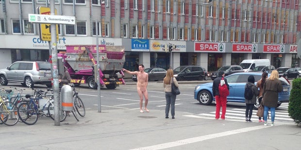 Am Montagmorgen joggte ein junger Mann nackt durch die Wiener Straßen.