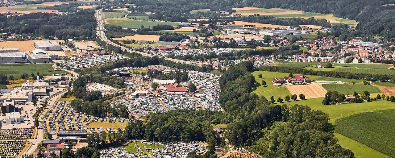 Das "Woodstock der Blasmusik"-Festival am Ried im Innkreis. Zehntausende Besucher werden jetzt vom Gelände evakuiert, weil heftige Unwetter drohen.