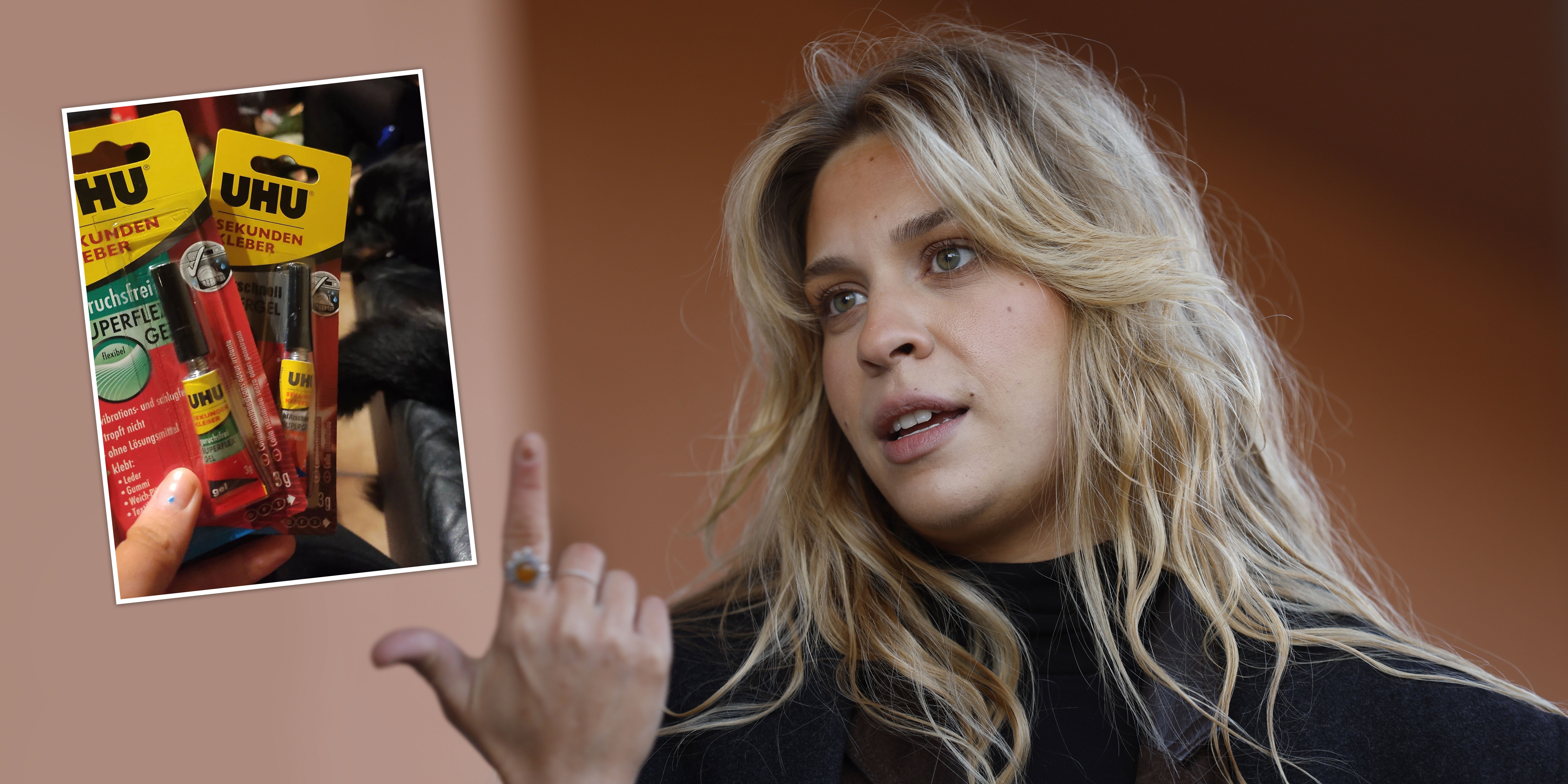 Von ihren Liebsten wurde die junge Deutsche zu Weihnachten mit mehreren Packungen Superkleber beschenkt, wie sie auf Instagram präsentiert. Statt Merry Christmas schrieb Windl "Merry Crisis" dazu in ihre Story.