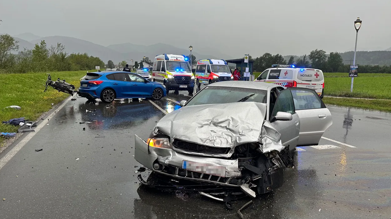 Tirol. Ein 17-jähriger Autofahrer, der mit vier Freunden im Alter von 16 bis 20 Jahren unterwegs war, kollidierte auf der L212 von Kufstein kommend in Richtung Kirchbichl bei einer Kreuzung mit dem Pkw eines 30-jährigen Lenkers und seiner 29-jährigen Beifahrerin aus Deutschland. Beide Fahrzeuge drehten sich nach dem heftigen Zusammenstoß um die eigene Achse und kamen auf der Fahrbahn zum Stillstand, berichtet die Polizei.