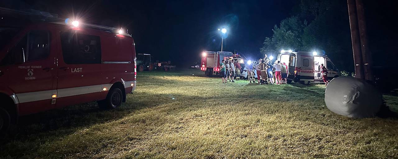 Die Tochter und ein Bekannter des Einheimischen, die bei der Heuernte behilflich waren, leisteten sofort Erste Hilfe und setzten die Rettungskette in Gang, teilte die Polizei mit. Der 45-Jährige wurde von den eintreffenden "First Responder", Notarzt und Rettung erstversorgt. Daraufhin wurde er mit Verletzungen am Oberkörper in das Krankenhaus Kufstein eingeliefert.