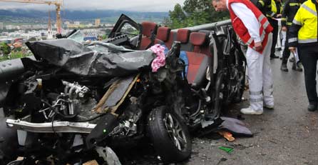 Dramatische Szenen spielten sich gestern Nachmittag auf der Aldranser Straße in Innsbruck ab: Auf der regennassen Fahrbahn geriet ein bergwärts fahrender Geländewagen plötzlich auf die Gegenfahrbahn und krachte mit voller Wucht in einen entgegenkommenden Smart. Der Kleinwagen wurde durch den Aufprall wie eine Cola-Dose zerquetscht. Der 48-jährige Lenker hatte überhaupt keine Chance.