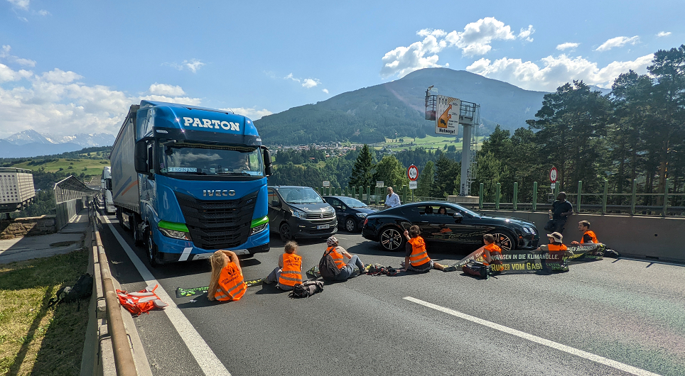 Dies sagte der Leiter der Öffentlichkeitsarbeit der Tiroler Polizei, Manfred Dummer, zur APA und bestätigte einen Bericht der "Tiroler Tageszeitung" (Freitagsausgabe). Bei diesem Vorgehen handle es sich um eine "Neuheit", zumindest in Tirol, so Dummer. Konkret wird ermittelt, ob grob fahrlässig eine besondere Gefährdung für die anderen Verkehrsteilnehmer herbeigeführt wurde. Schließlich kamen die Aktivisten laut Polizei mit drei Autos auf die Brennerautobahn, die immer langsamer wurden, ehe die Fahrzeuge auf der Europabrücke stoppten. "Dann stiegen sieben Personen aus, setzten sich auf die Fahrbahn und blockierten alle drei Fahrspuren in Richtung Brenner", schilderte ein Polizeisprecher den Hergang gegenüber der "TT". Sofort bildete sich ein Stau, der bald bis nach Innsbruck reichte. Nicht einmal eine Rettungsgasse sei frei geblieben, die Einsatzfahrzeuge seien kaum durchgekommen, hieß es seitens der Verkehrsabteilung. Schließlich reagierte man schnell, die Bezirkshauptmannschaft verfügte in kurzer Zeit die Auflösung der unangemeldeten Aktion.