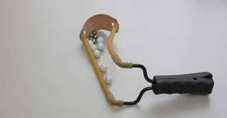 Dieser hatte eine Steinschleuder in der Hand und versuchte sich im Gras zu