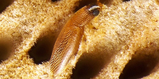 Der 0,55 Milimeter lange Minikäfer ist nur unter dem Mikroskop zu sehen.