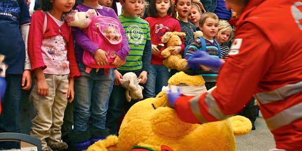 „Ziel des Projektes ist es, den Kindern die Angst vor dem Arzt-Besuch zu nehmen“, erklärt Organisatorin Franziska Schmidt. An verschiedenen Ständen konnten die Drei- bis Sechsjährigen an zwei Tagen ihre Stofftiere mitbringen und sie mit 115 Innsbrucker Medizin-Studenten, die die Kuscheltier-Ärzte mimten, beatmen, nähen, intubieren. Danach gab’s für Kinder und wieder gesundete Lieblingsstofftiere eine große Jause.