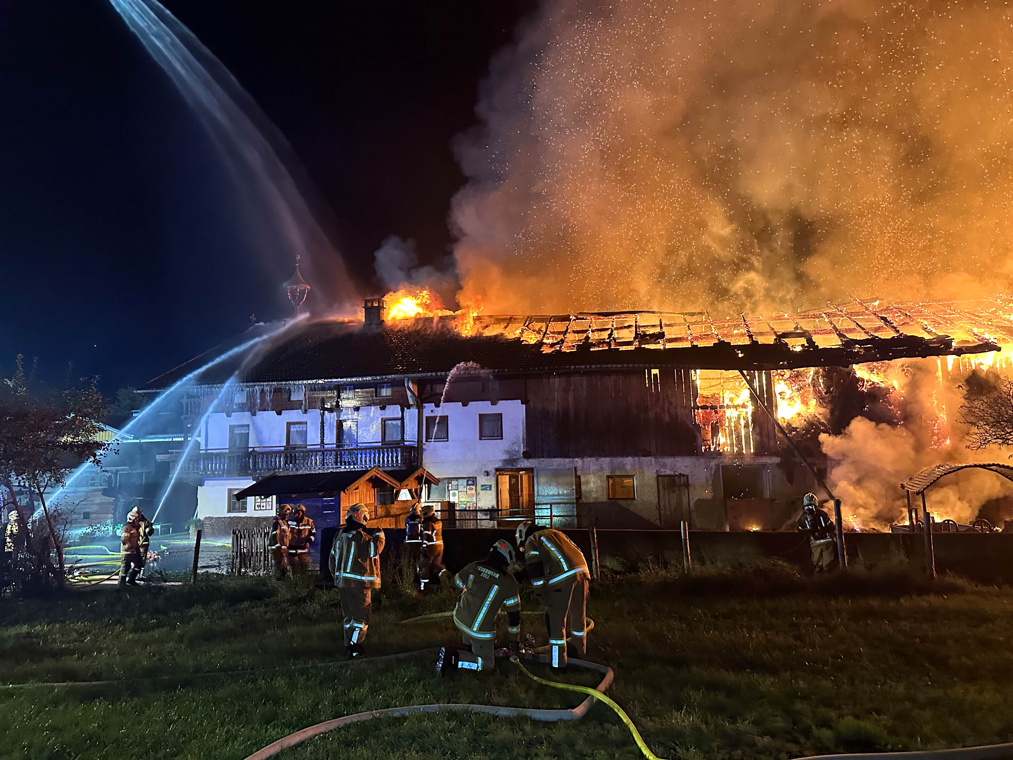 Großeinsatz in der Nacht auf Sonntag in Söll, Bezirk Kufstein. Dort stand ein Bauernhof in Vollbrand. Alle Tiere, über 30 Rinder und Jungtiere konnten zum Glück noch aus dem Stall gerettet und in Sicherheit gebracht werden.
