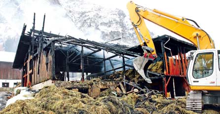 Gegen halb vier Uhr früh war aus ungeklärter Ursache ein 800 Quadratmeter großer Stall mitten im Ortsteil Plangeross blitzschnell in Flammen aufgegangen: „Das Feuer hat sich schnell ausgebreitet, überall war Heu“, so Fadum.