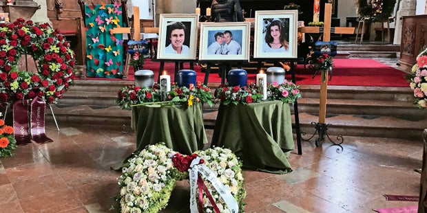 Es war bedrückend und feierlich zugleich: In der Stadtpfarrkirche von Kitzbühel waren die blauen und silbernen Urnen von Nadine H. (19), ihrem Bruder Kevin (25) und den Eltern Andrea (51) und Rupert (59) auf zwei kleinen Tischen aufgebahrt. Davor Blumengestecke aus weißen Rosen. Auf einer Videowand liefen Bilder der Mordopfer, die am Sonntag vor einer Woche in ihrem Haus vom Ex-Freund der Tochter erschossen worden waren. Kerzen flackerten vor dem Altarraum.