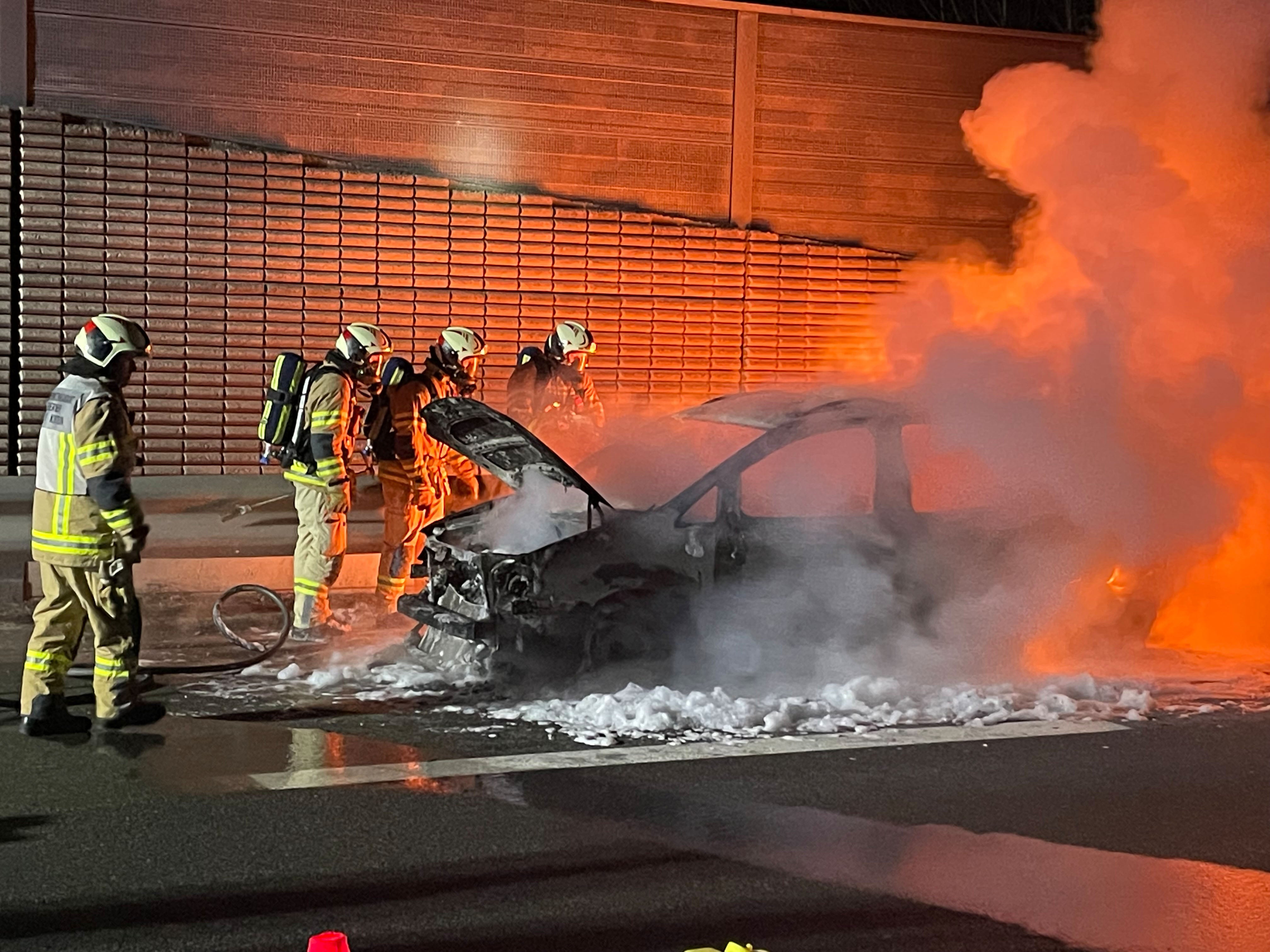 Auslöser des Brandes dürfte ein technischer Defekt im Motorraum gewesen sein. Am Fahrzeug entstand Totalschaden. Verletzt wurde zum Glück niemand.