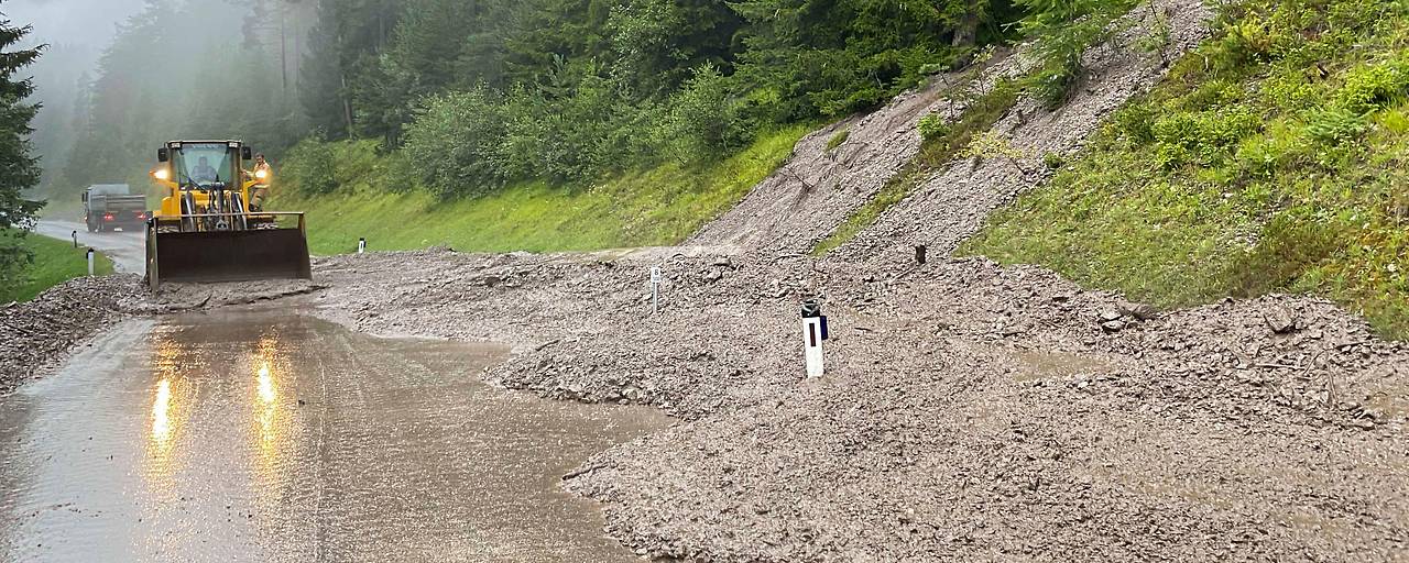 Erneut ist eine Mure auf die Landesstraße im Gschnitztal abgegangen – Aufräumarbeiten laufen auf Hochtouren.