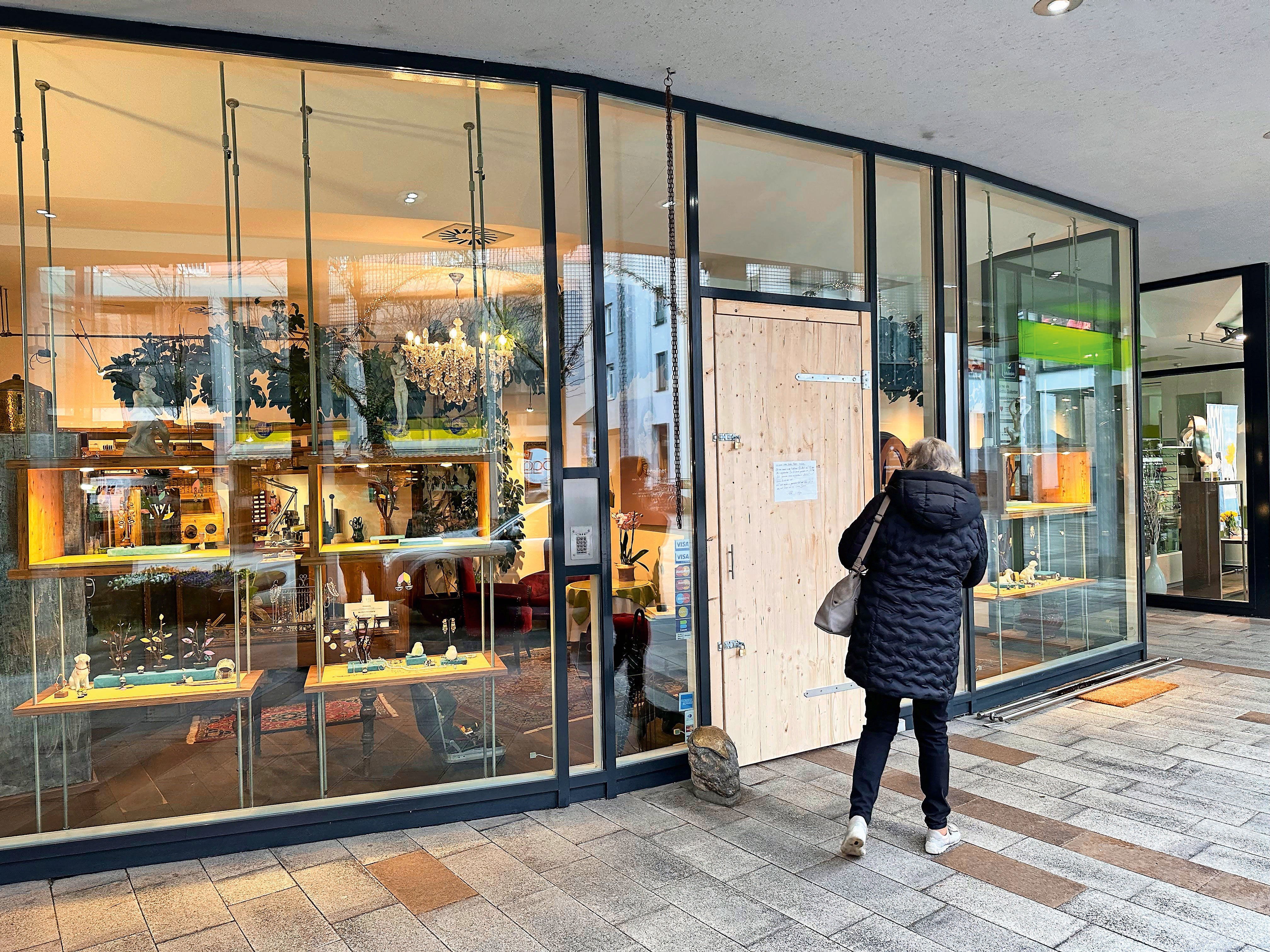 Die Eingangstüre zum Preziosenladen war aufgebrochen, und aus den Auslagen waren sämtliche Wertgegenstände, die man schnell an sich raffen konnte, gestohlen worden. Laut Zeugenaussagen handelte es sich bei den Tätern um zwei Gestalten mit schwarzen „Hoodies“ mit roter Aufschrift. Nicht nur die Besitzer Eva und Alex hoffen auf Hinweise, die auf die Spur der Täter führen.