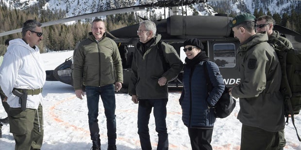 Auf dem Weg zur internationalen Bundesheerübung in Hochfilzen/Tirol wird der Helikopter mit Van der Bellen von zwei Eurofightern flankiert. Sie zwangen den Hubschrauber zur Landung. Das Luftraummanöver fand im Zuge einer Übung statt, wie der Pressesprecher des Bundespräsidenten Pickl-Herk gegenüber oe24 bestätigt.