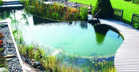 dem etwa 25 Quadratmeter großen Gartenteich der Familie.