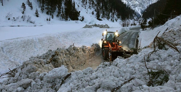 Die Planseestraße in Tirol wurde von einer Lawine verlegt.