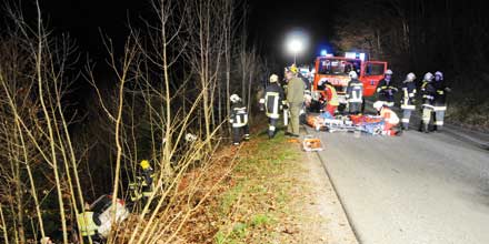 einen Baum geprallt. Der 36-Jährige wurde eingeklemmt. Von der Straße aus