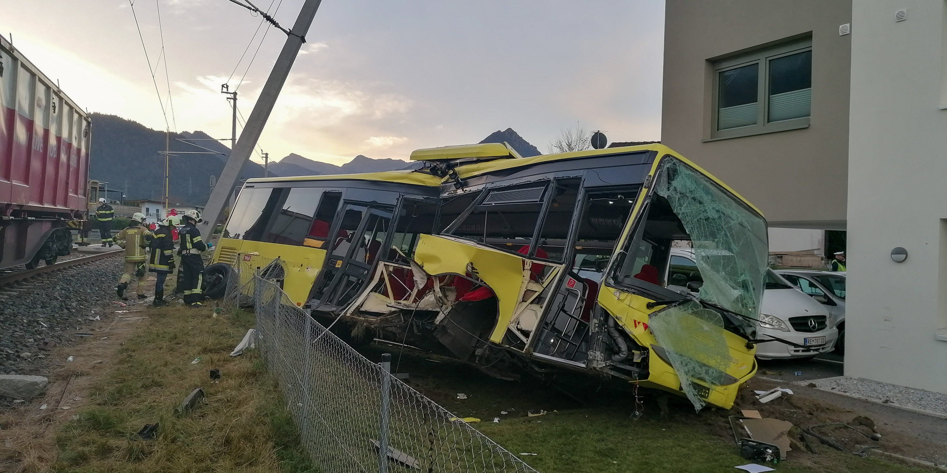 Der Bus wurde rund 30 Meter mitgeschleift, touchierte einen Oberleitungsmast und kam dann zum Stehen. Der einheimische Buslenker sei aufgrund der Rotation des Fahrzeugs aus dem Bus geschleudert worden und rund 20 Meter neben den Gleisen zu liegen gekommen, so die Exekutive. Er wurde in die Klinik nach Innsbruck geflogen. Die zwei Kinder - ein deutsches Geschwisterpaar im Alter von elf und 13 Jahren - wurden verletzt.
