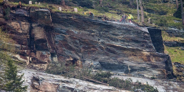 Um 14.20 Uhr ist die Sprengung erfolgt. Köll zeigte sich mit dem Ergebnis sehr zufrieden. "Der Geologe befindet sich bereits wieder auf dem Geröllkegel", sagte er. Nun können die Experten weitere Planungen gezielt vornehmen. Für Donnerstag seien weitere Sprengungen "absolut auszuschließen". "Erst am Wochenende werden wir wegen des starken Regens und Windes weiter im Gelände arbeiten können", sagte er.