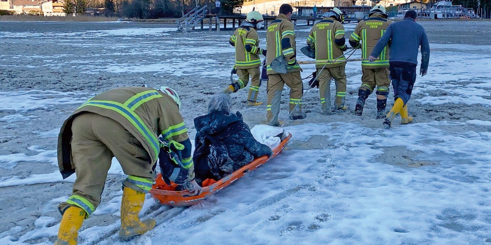 Während sich zwei Einsatzkräfte um die beiden Kinder kümmerten, gelang es der freiwilligen Feuerwehr und der Rettung, mit Leitern die bereits unterkühlte Tirolerin unverletzt zu befreien.