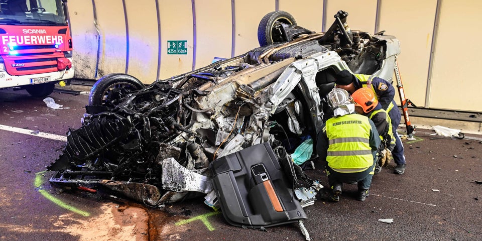 Auto prallte gegen Tunnelportal - Lenker wurde schwer verletzt.