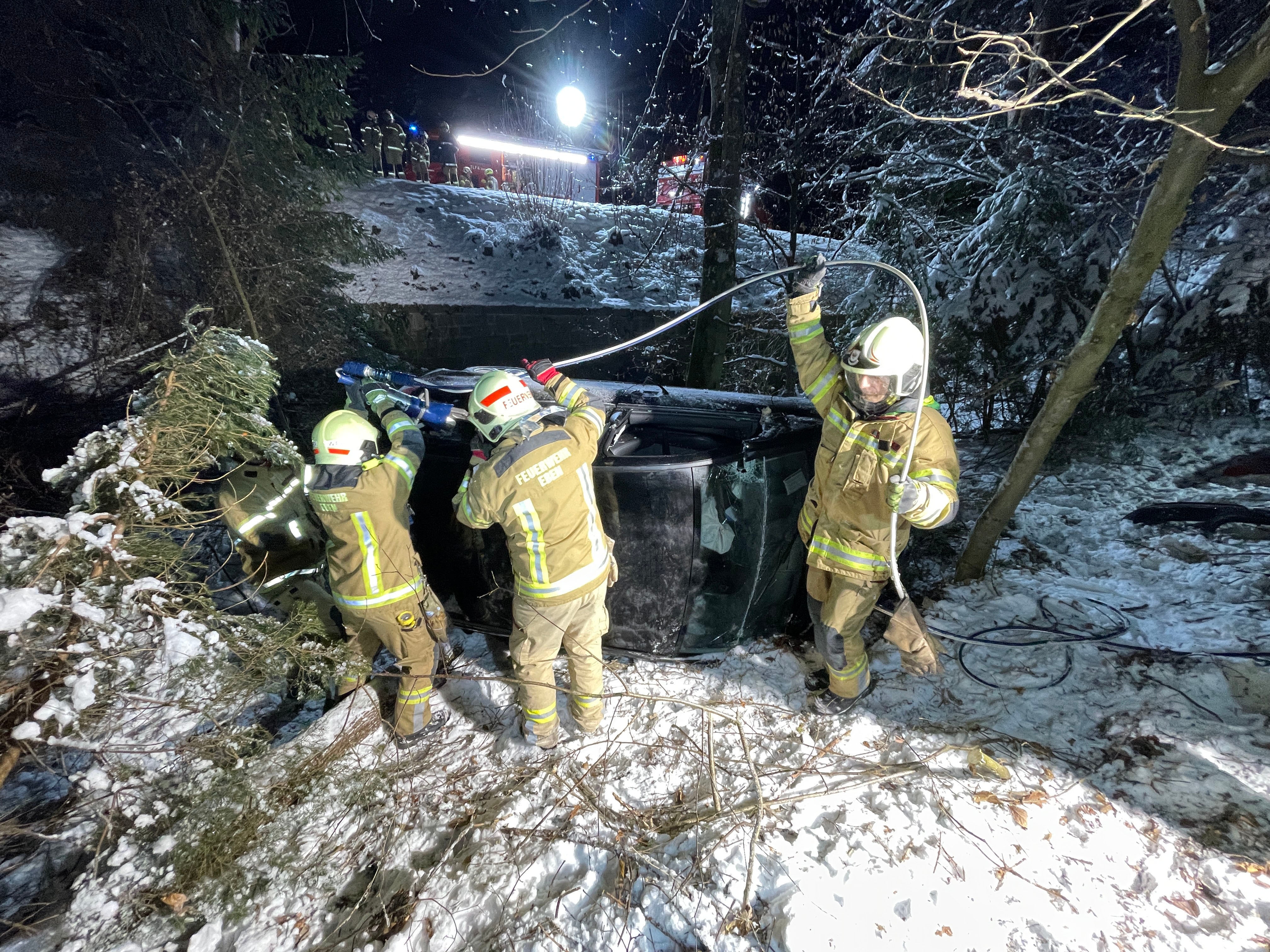 Gegen 4.00 Uhr entdeckte ein Fahrer eines Winterdiensts Reifenspuren, die unerklärlicherweise über den Fahrbahnrand hinausführten. Er verständigte die Einsatzkräfte. Der Notarzt konnte aber nur mehr den Tod der im Auto eingeklemmten Fahrzeuglenkerin feststellen. Laut Informationen vor Ort gibt es keine Hinweise auf Fremdbeteiligung. Der Wagen wurde mit Hilfe der Feuerwehr - die mit hydraulischem Rettungsgerät im Einsatz war - aus dem steilen Abhang geborgen und abgeschleppt.