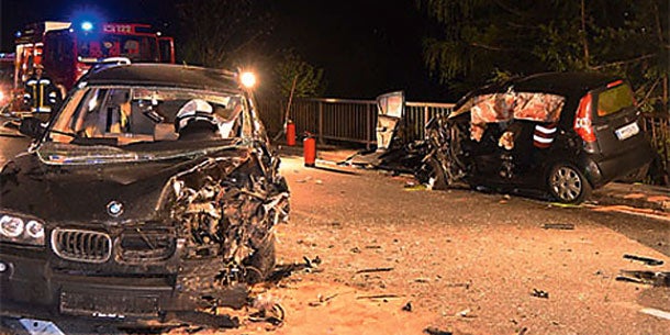 Tragischer Unfall in Karres (Bezirk Imst): Rifat A. (24) fuhr gegen 21 Uhr mit seinem Alpha Romeo auf der B 171, als plötzlich ein Reh auf die Straße sprang, von dem Auto erfasst wurde und durch die Wucht des Aufpralls in zwei Teile zeriss. Der hintere Teil des Tierkadavers flog in weiterer Folge gegen einen entgegenkommenden Suzuki. Die Lenkerin, Alexandra K. (49), verriss das Lenkrad und krachte frontal mit einem weiteren Auto, einem BMW, in dem eine vierköpfige Familie saß, zusammen.