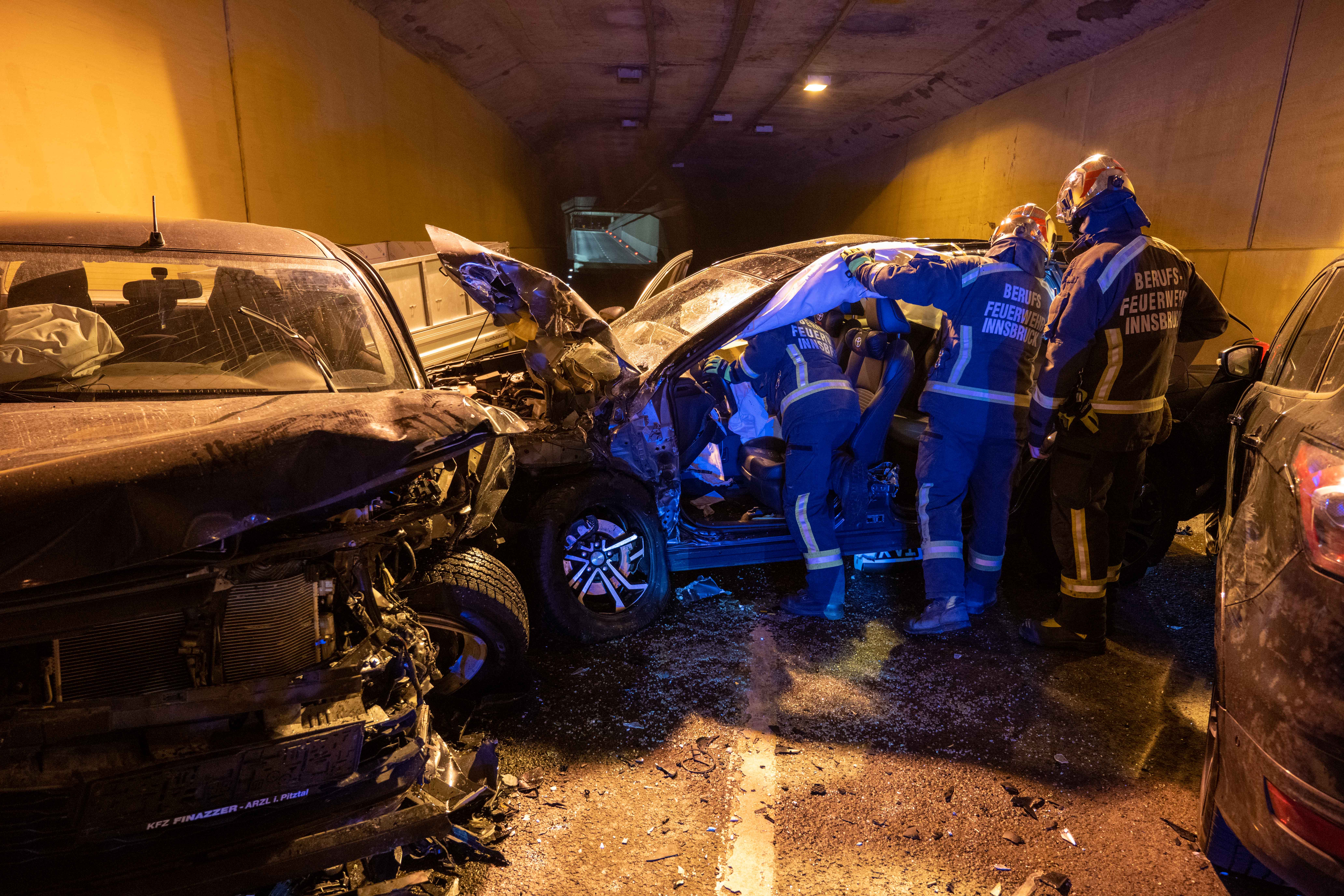 Bei dem Unfall in der Egger-Lienz-Straße in Innsbruck waren insgesamt drei Fahrzeuge beteiligt. Ein 53 Jahre alter Pkw-Lenker, der hinter dem mit zwei Fahrgästen besetzten Taxi ebenfalls in der vorschriftsmäßigen Fahrtrichtung unterwegs war, konnte nicht mehr rechtzeitig bremsen und war dem Taxi aufgefahren. Die Rettungskräfte hatten alle Hände voll zu tun: Die Berufsfeuerwehr Innsbruck musste den in seinem Fahrzeug eingeklemmten 37-jährigen Taxilenker mit der Bergeschere befreien. Er hatte schwere Verletzungen erlitten. Er sowie drei weitere Personen mussten in die Innsbrucker Klinik eingeliefert werden. "Der 43-jährige unfallverursachende Fahrzeuglenker war alkoholisiert", teilte die Polizei mit, "er wird angezeigt".
