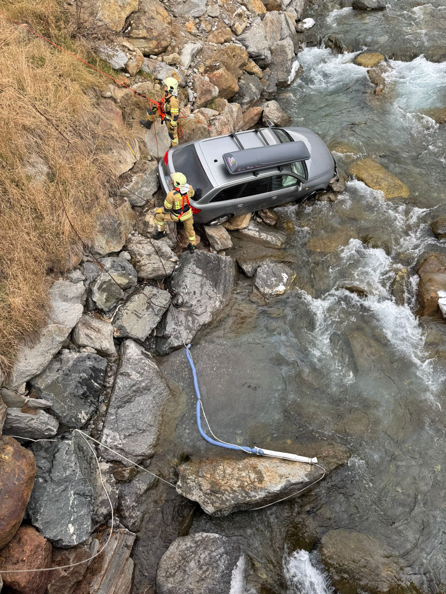 Am Audi entstand Totalschaden. Da sich das Fahrzeug in Hanglage befand, musste es zunächst von der Feuerwehr gegen das Abrutschen gesichert werden, bevor es von einem Abschleppdienst geborgen werden konnte, hieß es.