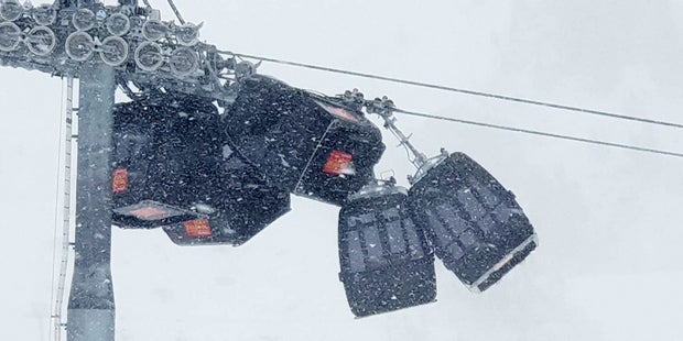 Daraufhin stand die auch die Seilbahn still, hieß es. Zu dem Zeitpunkt befanden sich keine Personen mehr in den Kabinen. Die Gondelbahn war zuvor wegen eines starken Sturms geräumt worden. Als die Gondeln eingefahren werden sollten, kam es schließlich auf Höhe der Stütze 6 zu dem Zwischenfall.